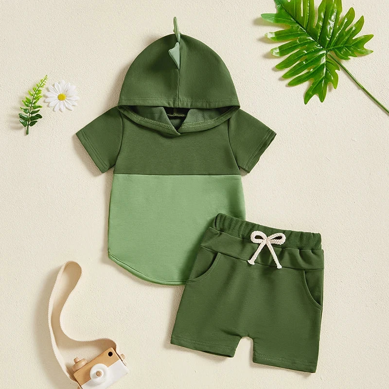 Complete 2-piece set – Includes matching hooded dinosaur spike T-shirt and shorts for effortless coordination.