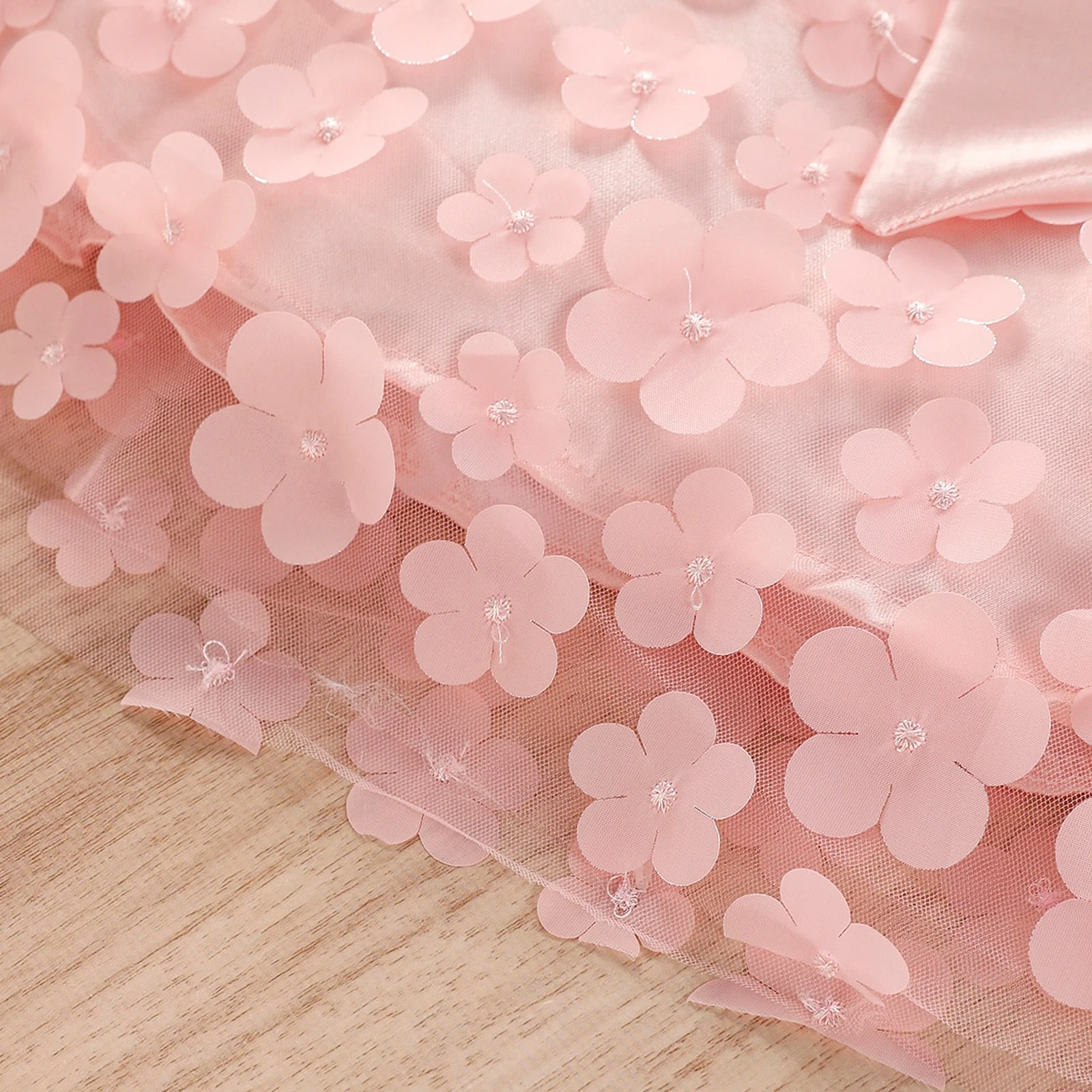 Delicate petal details – Adorable petal accents enhance the dress’s romantic feel.
