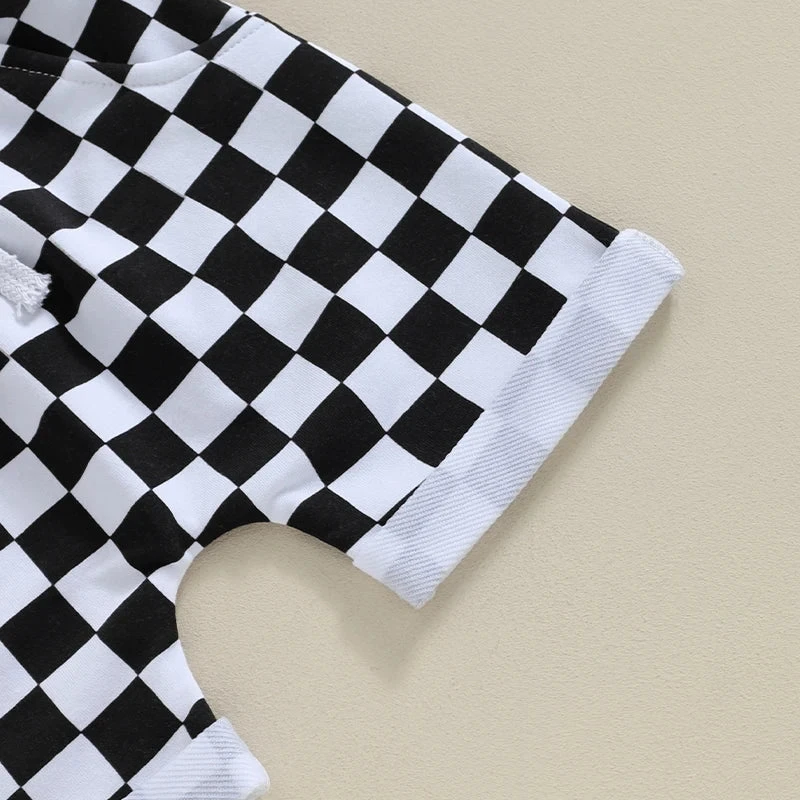Classic checkered shorts – Timeless plaid pattern that pairs perfectly with the solid top.