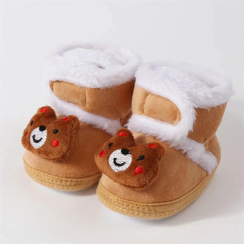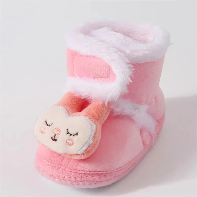 These are cute animal soft-sole booties for baby and toddler boys and girls who need cozy, comfortable footwear for early steps and indoor play. Made from soft coral velvet with adorable animal patterns, they feature easy Velcro straps for a secure fit and soft soles that allow natural foot movement. Available in three sizes from 0-6 months through 12-18 months with detailed insole measurements, they solve the challenge of finding booties that are both warm enough for little feet and flexible enough for natural development.