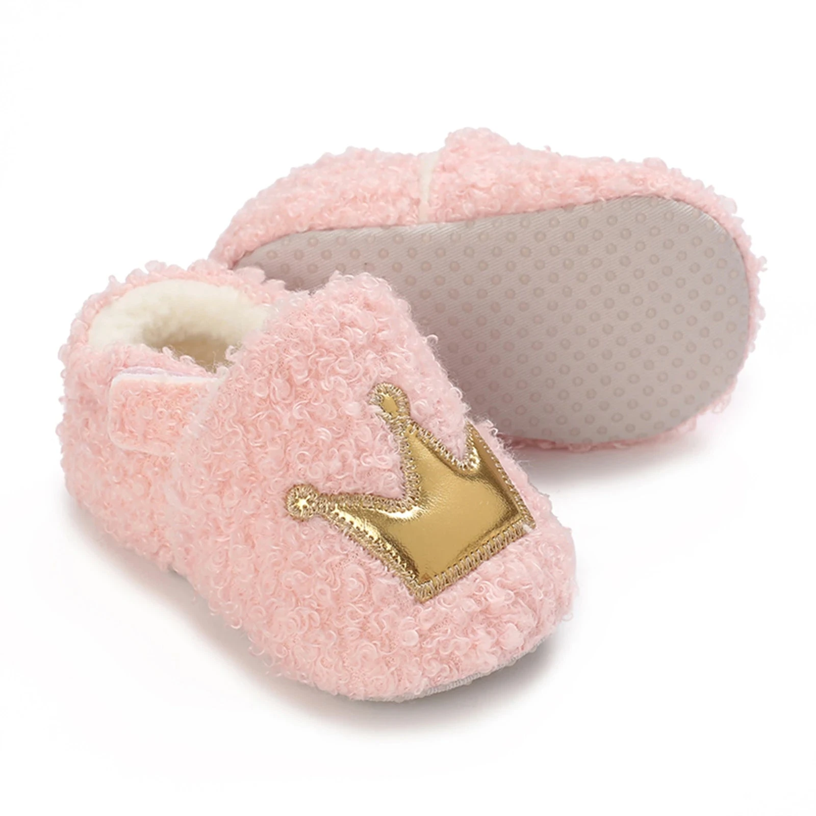 These are cute soft-sole crown slipper shoes for baby and toddler boys and girls who deserve to feel like royalty. Made from soft coral velvet and canvas with adorable crown patterns, they feature a soft sole that allows natural foot movement while keeping little feet warm and cozy. Available in three sizes from 0-6 months through 13-18 months with detailed insole measurements, they solve the challenge of finding slippers that are both regal enough for special photos and comfortable enough for everyday play.