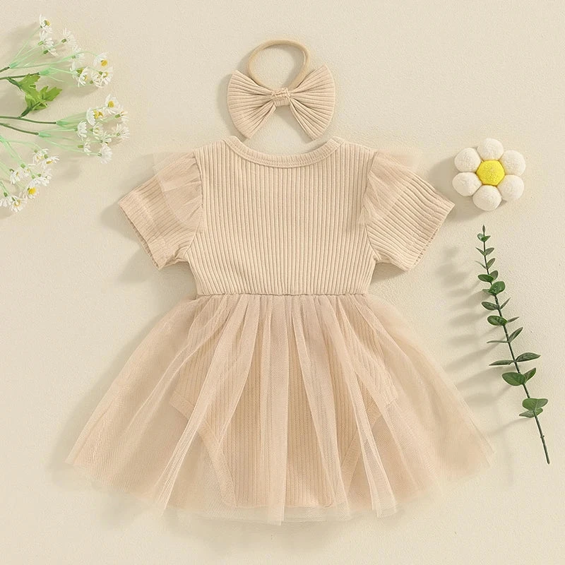 Solid Ribbed Tutu Dress & Headband